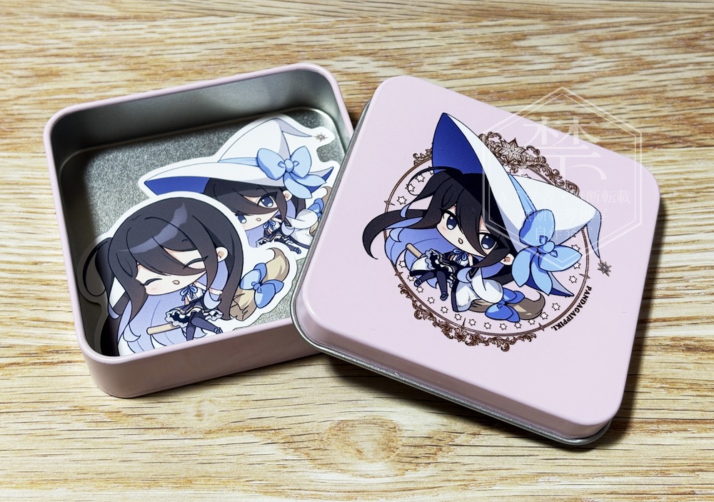 『クーの缶』83mm×83mm×22mm、ステッカー2枚付き